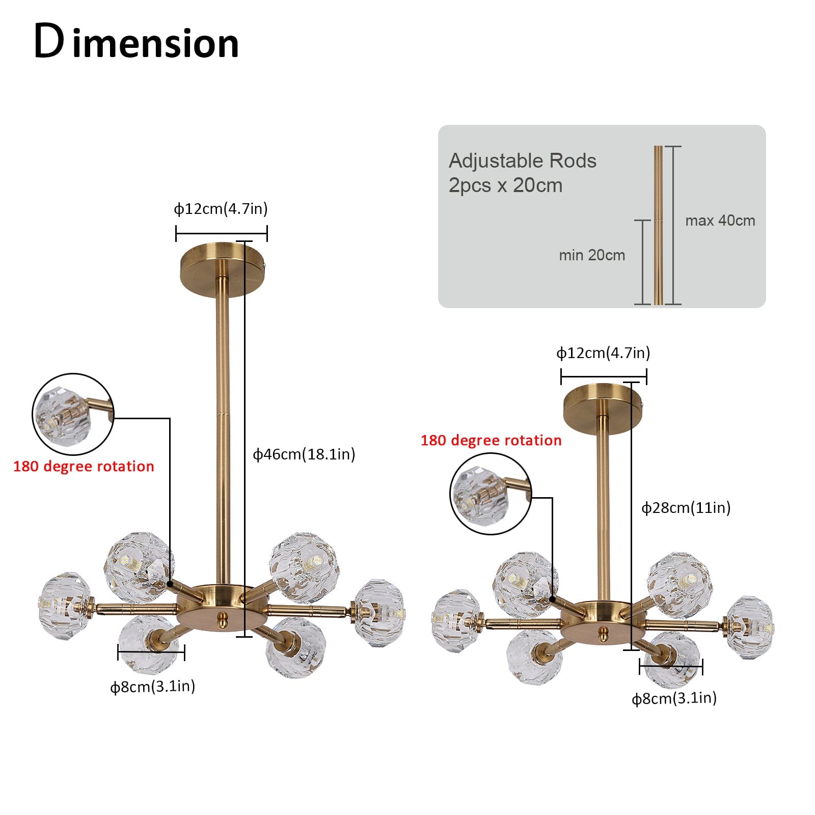 The Crystal Led Hanging Light Fixture Comes With Two Extension Rods, Giving You The Flexibility To Adjust The Hanging Height According To Your Preference. Whether You Need To Illuminate A Small Area Or Create A Grand Display, This Fixture Can Be Easily Adjusted To Fit Any Space. Additionally, It Is Designed To Be Installed On Both Sloped And Parallel Ceilings, Adding To Its Versatility And Convenience.