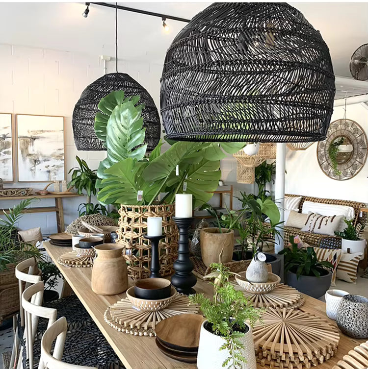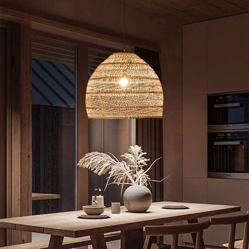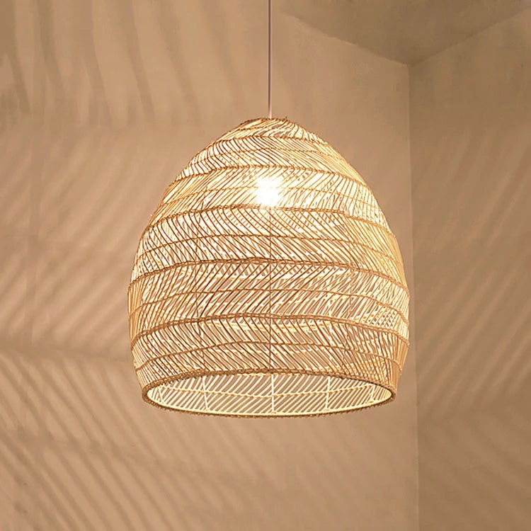 Handmade Rattan Pendant Light – Boho Woven Bamboo Hanging Lamp