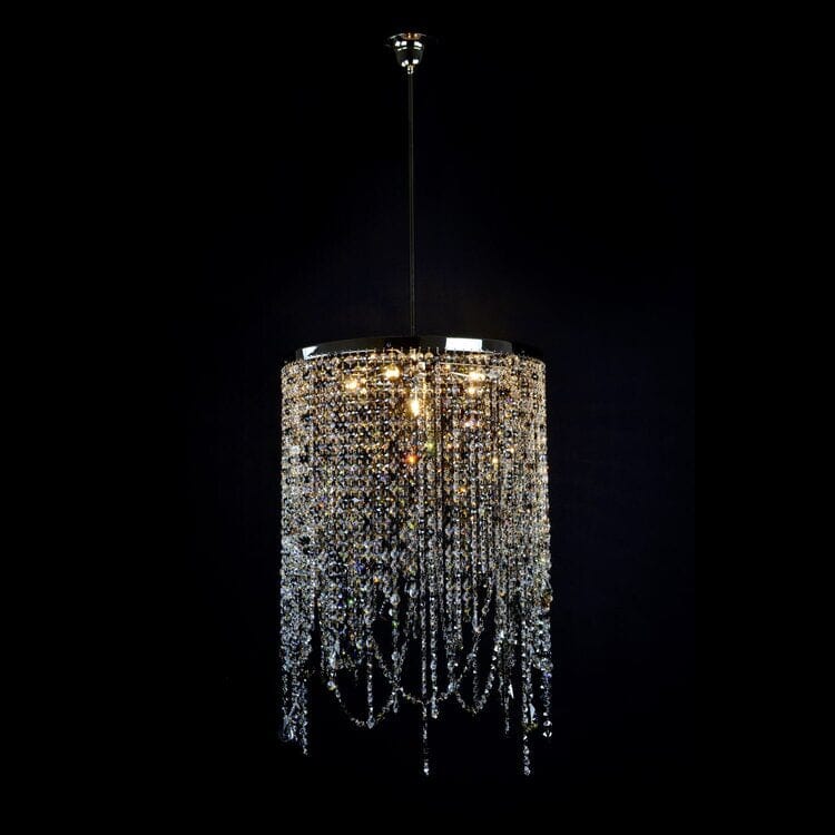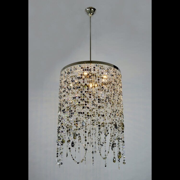 Elevate Your Living Space With The Helly Crystal Chandelier, A Stunning Piece That Seamlessly Blends Contemporary Style With Antique Charm. The Sleek Cylinder Shape Is Adorned With Captivating Details, Including Asymmetrical Chains, Generous End Trimmings, And A Dazzling Crystal Plating That Catches The Light In A Mesmerizing Dance. Ideal For Rooms With Lofty Ceilings, This Chandelier Brings A Touch Of Sophistication To Any Space.