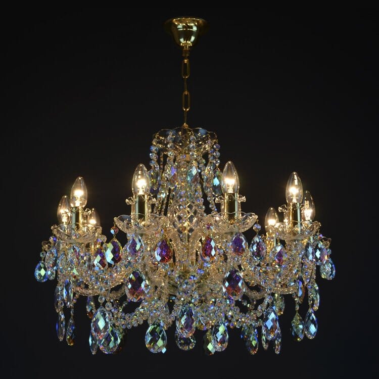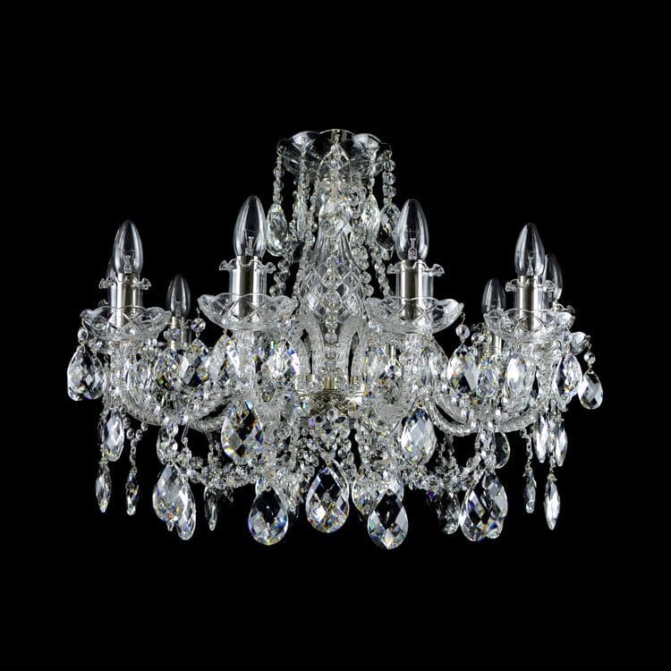 This Chandelier Boasts Sixteen Glass Arms Adorned With Intricate Hand-cut Bowls. The Mesmerizing Play Of Light Is Achieved Through The Reflection Of Cut Crystal Trimmings, Casting A Stunning Spectrum Of Colors That Transforms Any Space Into A Radiant Spectacle.