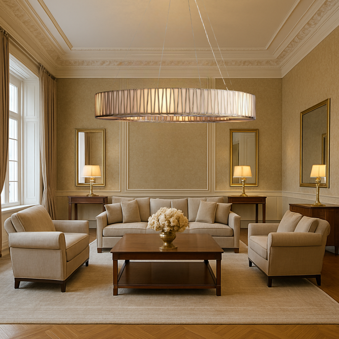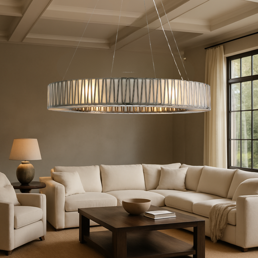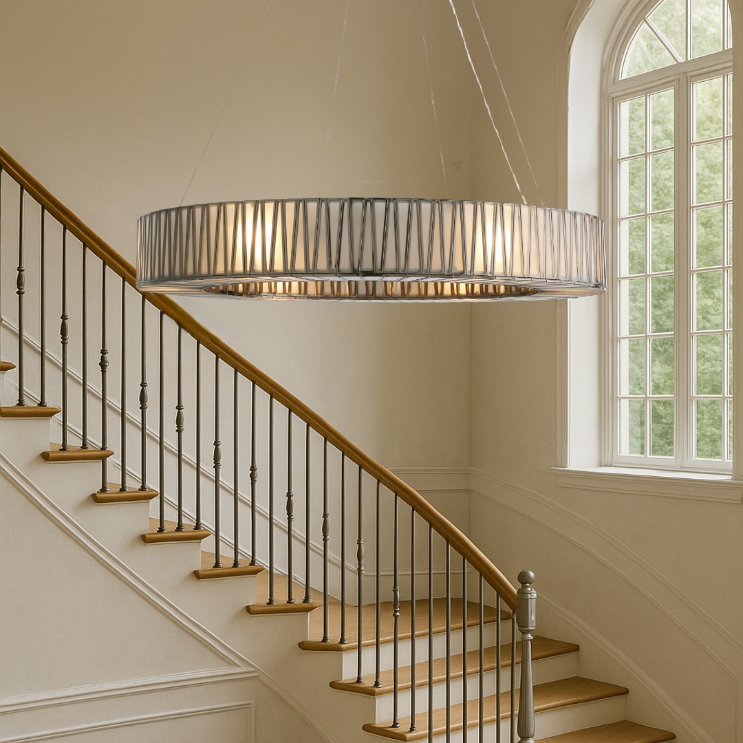 Luxury Meets Precision In The Jinnah Round Chandelier — Where Contemporary Style And Artisan Craftsmanship Blend Seamlessly. Crafted From Hand-blown Ribbed Glass And A Brass Frame, This Statement Piece Provides Warm Ambient Lighting Perfect For Large Living Rooms, Staircases, Or High-ceiling Spaces. Whether Day Or Night, Its Soft Glow And Sculptural Silhouette Offer Timeless Style Rooted In Quality. Built To Last With Adjustable Stainless Cables And Premium E12 Bulb Compatibility.