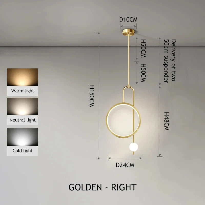 The Modern Gold Ring Pendant Light brings contemporary elegance and warmth to any interior. Featuring a sleek gold ring design, this pendant creates a soft, even glow that enhances the ambiance of living areas, dining spaces, or bedrooms. Its refined silhouette and polished finish make it a sophisticated centerpiece, combining aesthetic appeal with functional illumination.