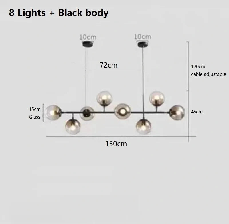 The Amanda Glass Chandelier brings refined contemporary elegance to modern interiors with its striking glass ball design and warm, ambient illumination. Crafted from premium aluminum and glass, this chandelier balances visual sophistication with everyday functionality.