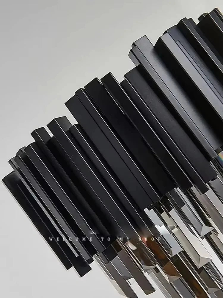 Postmodern Minimalist Design: Clean lines, crystal accents, and polished steel create a timeless yet contemporary aesthetic.
