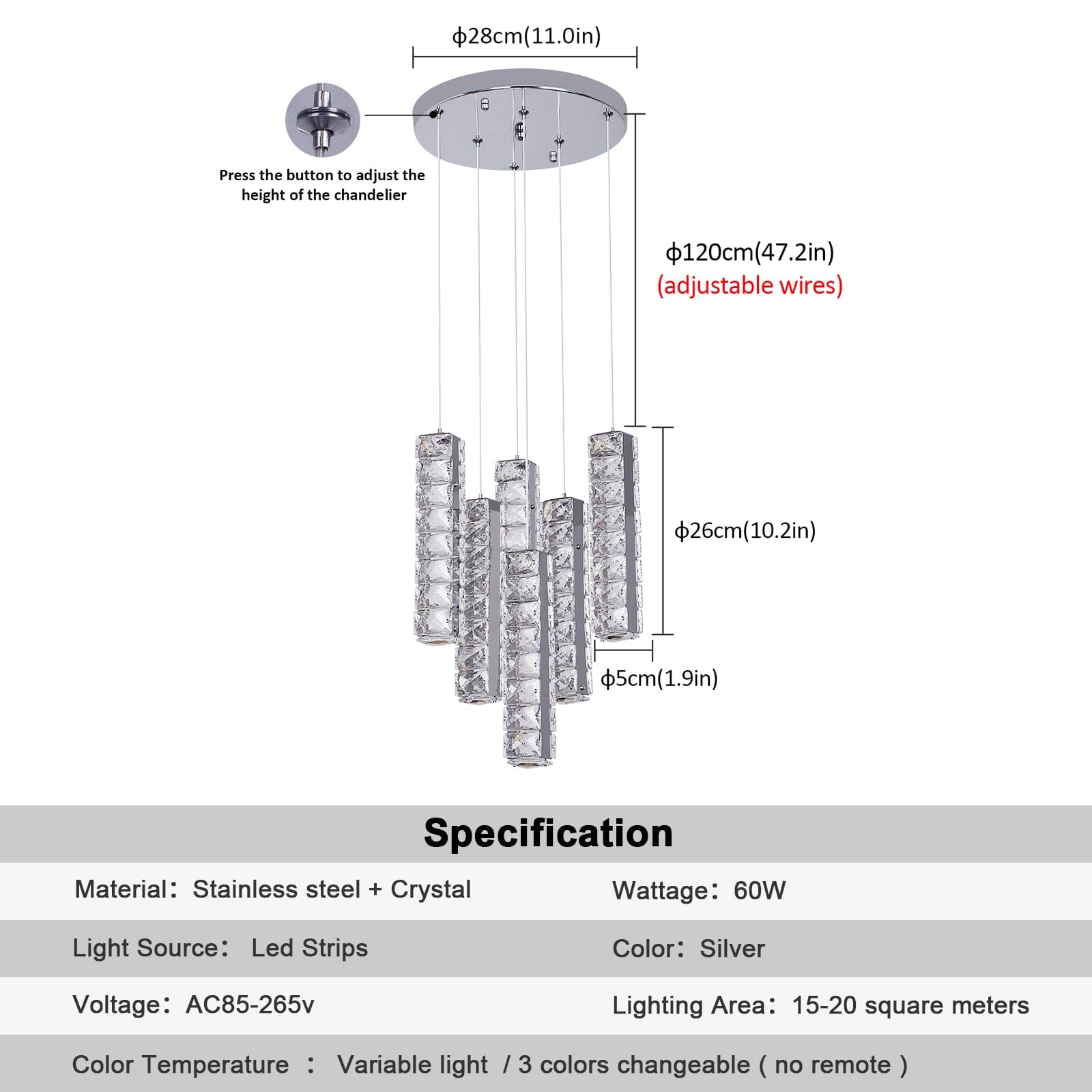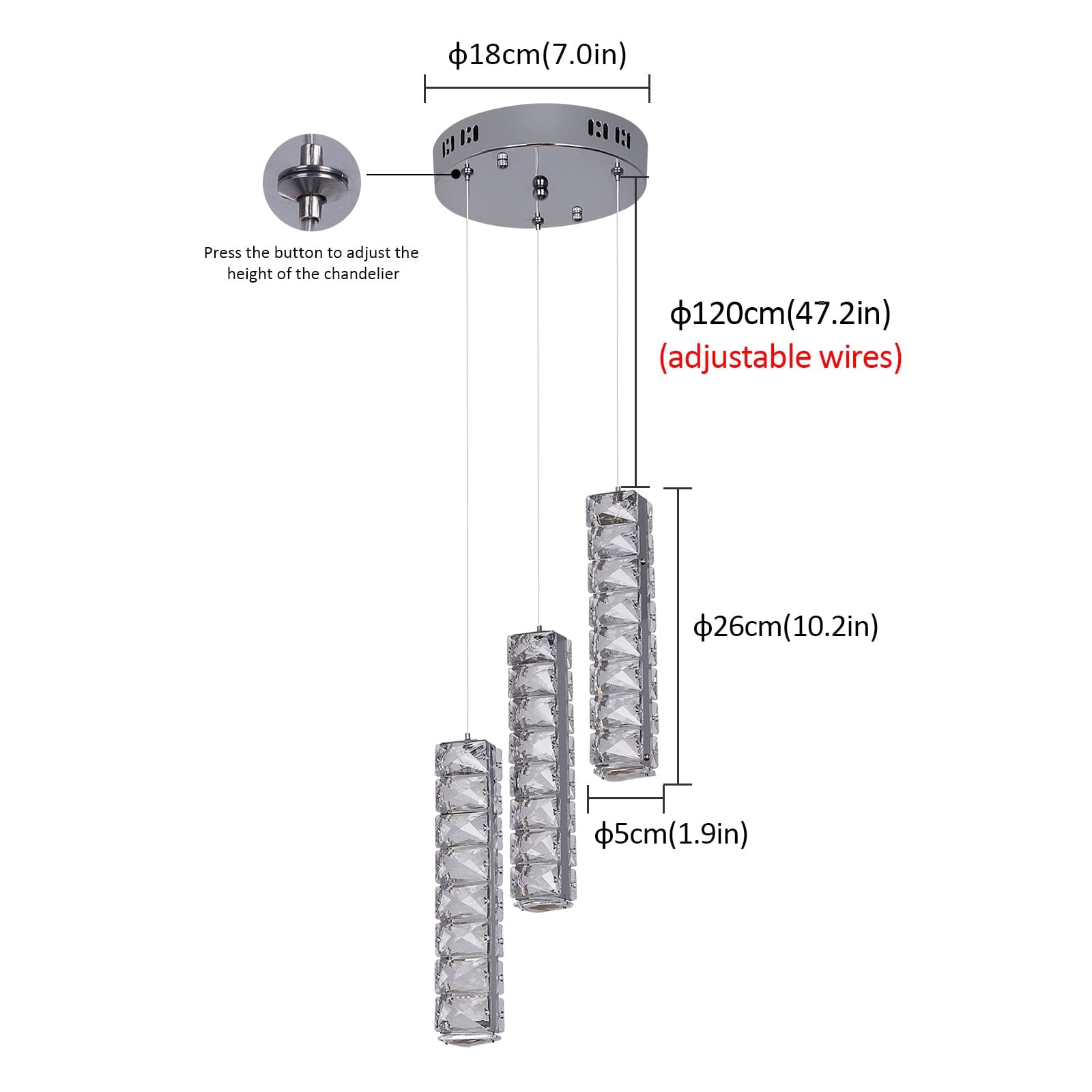 Transform Your Living Space Into A Luxurious Haven With Our Vertical Crystal Luxury Led Chandelier. This Exquisite Chandelier Offers A Mesmerizing Cylinder Style Adorned With Glistening Crystals, Creating A Captivating Centerpiece That Elevates The Ambiance Of Any Room. The Length Of The Suspension Is Adjustable, Ensuring Convenience And Flexibility In Positioning The Chandelier For The Perfect Lighting Arrangement.